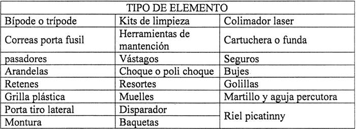 Nota: Estos elementos en conjunto de ninguna manera serán constitutivos de un arma terminada.