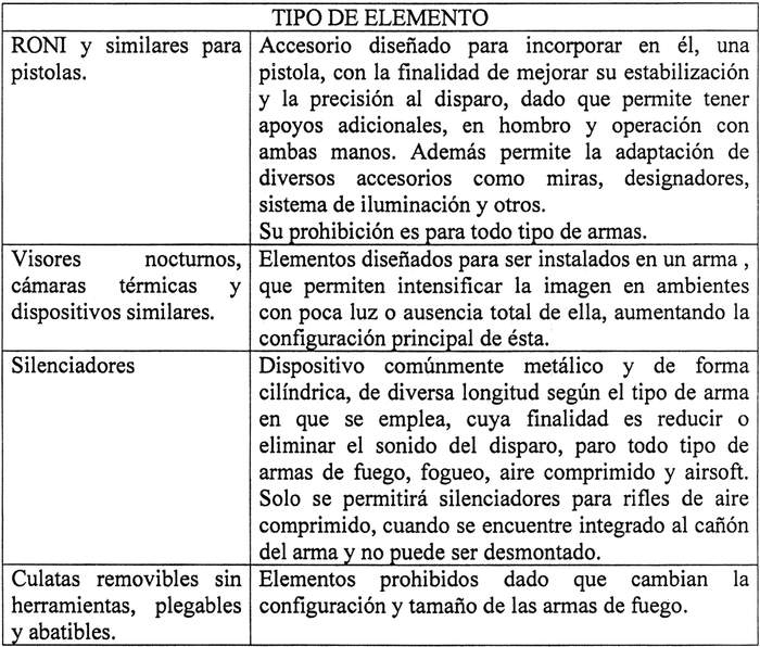 LISTADO DE ACCESORIOS PARA ARMAS DE FUEGO PORTÁTILES