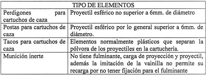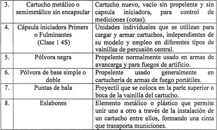 TABLA DE CANTIDADES PERMITIDAS DE CARTUCHOS EN CARGADORES O TUBOS CARGADORES DE ARMAS, POR TIPO DE USO