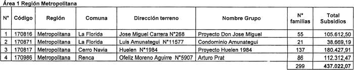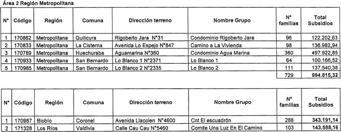 3. El detalle de los recursos comprometidos por concepto de subsidio para la adquisición de terreno y subsidio para la construcción, para las postulaciones seleccionadas en el Resuelvo anterior y que por este acto se asignan, se informa en el cuadro que se adjunta como anexo y que forma parte integrante de la presente resolución.