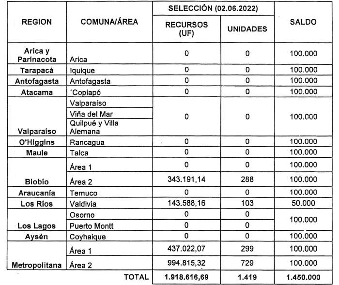 5. Los recursos comprometidos en el Resuelvo 1. de la presente resolución exenta, para los proyectos seleccionados en el concurso a que se llamó por resolución exenta N° 504 (V. y U.), de 2022, cuyo cierre de postulación se efectuó el día 2 de junio de 2022, se resumen en el siguiente cuadro para cada región del país, según corresponda, incluyendo la suma total de familias beneficiadas y Unidades de Fomento comprometidas, considerando los montos de subsidio de los proyectos, incluidos sus respectivos Servicios de Asistencia Técnica, Fiscalización Técnica de Obras y aranceles del Conservador de Bienes Raíces: