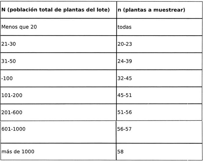 De acuerdo con el número de plantas de cada lote, incluido en la solicitud de muestreo, se establecerá el número de muestras requeridas para amparar la sanidad del lote utilizando la intensidad de muestreo indicada en la Tabla 3.