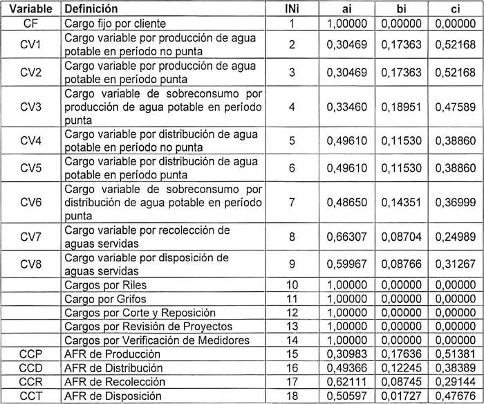 Se definen IN1, IN2, IN3, IN4, IN5, IN6, IN7, IN8, IN9, IN10, IN11, IN12, IN13, IN14, IN15, IN16, IN17 e IN18: como los polinomios de indexación de tarifas. Se calculan utilizando la siguiente fórmula general: