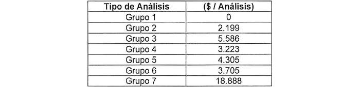 El valor por cada control directo de Riles será igual a la suma de los valores asociados a los conceptos de cantidad de horas de muestreo, tipos y cantidad de análisis efectuados y costo administrativo que se señalan más adelante. Los tipos de análisis a efectuar estarán en función de la actividad económica y al CIIU (Clasificación Industrial Internacional Uniforme) de la misma.