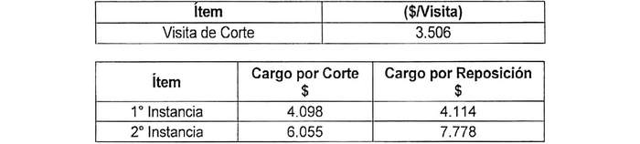 El prestador podrá cobrar por concepto de corte y reposición del suministro a usuarios morosos los siguientes cargos en las instancias que se indican: