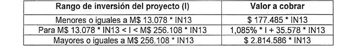 Donde I corresponde al monto total de la construcción del proyecto, en pesos.