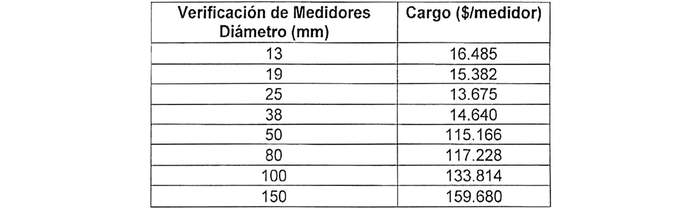 El prestador podrá cobrar por concepto de verificación de medidores el Cargo * IN14 de acuerdo a los siguientes valores: