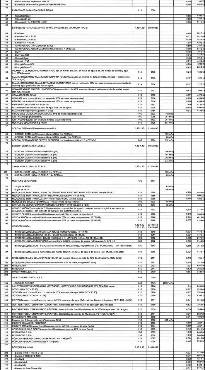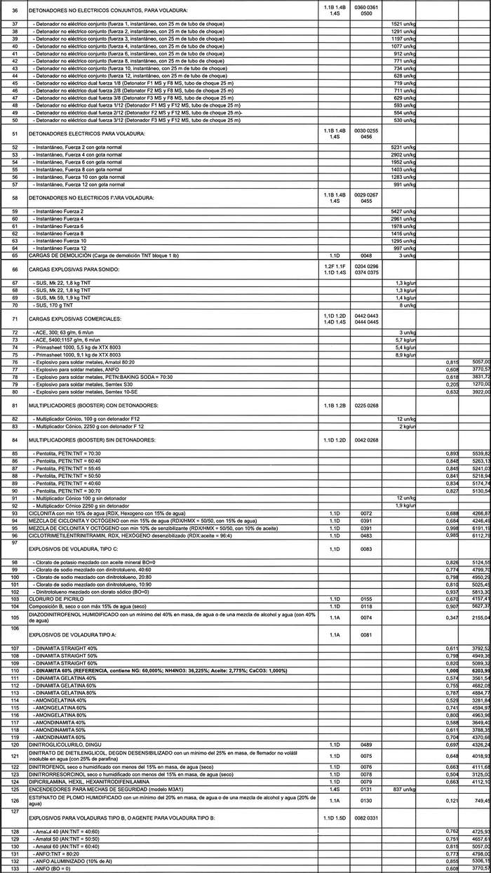 LISTADO REFERENCIAL DE EQUIVALENCIAS DE PRODUCTOS EXPLOSIVOS