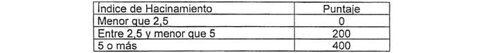 a) En lugar de lo dispuesto en el ítem de hacinamiento, se aplicarán los siguientes puntajes: