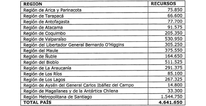 3. Los recursos dispuestos para la selección de postulantes, por región del país, son los siguientesResolución 588 EXENTA,