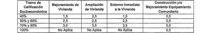 11. En atención a la crisis económica que ha generado la emergencia sanitaria en el país, el monto de ahorro mínimo para postular a los llamados del Programa de Habitabilidad Rural, a que se refiere el artículo 11 del DS N° 10 (V. y U.), de 2015, será rebajado para el proceso de postulación que regula la presente resolución, siendo exigible la acreditación del monto que se señala en la siguiente tabla, por cada una de las clases de proyecto a que se postule: