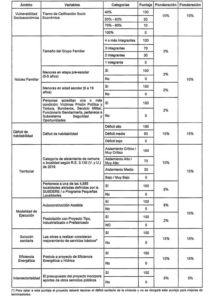 36. La selección de los postulantes para la asignación del subsidio se realizará conforme al orden de prelación que determine el respectivo puntaje del proyecto de Postulación, ordenados de mayor a menor, hasta enterar el total de recursos disponibles para este llamado. Los factores para determinar el puntaje que definirá la prelación entre los postulantes serán los siguientes: