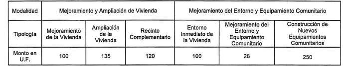 30. Para efectos de los subsidios complementarios mencionados en las letras a) y c) del artículo 10 del DS N° 10 (V. y U.), de 2015, correspondientes a Mejoramiento de Terreno y Requerimientos Arquitectónicos Locales, en el caso de las tipologías de Mejoramiento y Ampliación de Viviendas Existentes, podrá considerarse un valor máximo y único de hasta 30 Unidades de Fomento, independiente del número de tipologías de la postulación, y de hasta 10 UF para los proyectos de Equipamiento Comunitario. El subsidio complementario a que se refiere la letra c) del citado decreto, sólo podrá aplicarse si los elementos arquitectónicos que se pretende financiar se encuentran presentes en la edificación original, y se consideren en el proyecto de Mejoramiento de la Vivienda Existente.