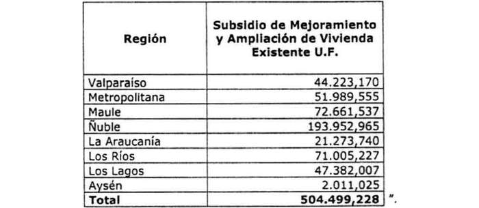 D.O. 10.05.2023elección ascenderán a un total de 504.499.228 UF y su distribución nacional será la siguiente: