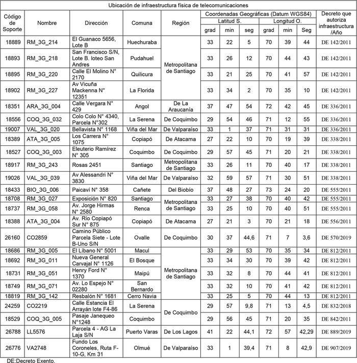 d) El decreto supremo Nº 99 de 2012, del Ministerio de Transportes y Telecomunicaciones, que fija el reglamento que establece los requisitos para obtener, instalar, operar y explotar concesiones de servicios intermedios de telecomunicaciones que únicamente provean infraestructura física para telecomunicaciones.