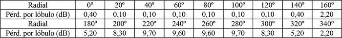 - Arreglo de antena de acuerdo a la siguiente tabla: