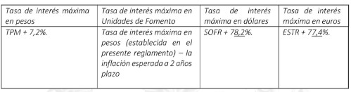 Las tasas de interés de los financiamientos con garantía Chile Apoya no podrán exceder las siguientes tasas según correspondaDecreto 243 EXENTO, HACIENDA