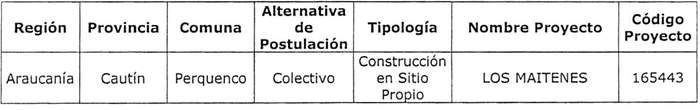 d) Que, durante la revisión de los proyectos que participarían del cierre del 5 de mayo del llamado a concurso señalado en el Visto c) precedente, se detectó que debido a un error de reporte del sistema, se indicó un número incorrecto de familias hábiles en el proyecto Los Maitenes, de la comuna Perquenco de la Región de la Araucanía, código 165443.