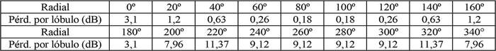- Diagrama de radiación horizontal de acuerdo a la siguiente tabla: