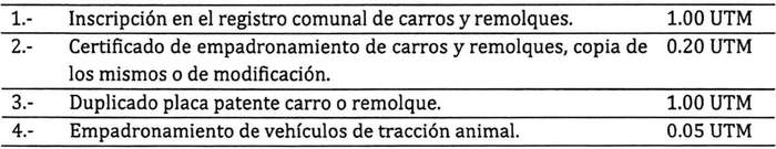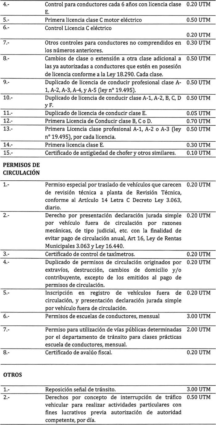 Artículo 3: Los derechos municipales contemplados en la presente ordenanza se encuentran expresados en Unidades Tributarias Mensuales (UTM), porcentajes de valores. Estos derechos se liquidarán y pagarán en pesos depreciando en fracciones inferiores a cincuenta centavos de peso, y elevándose al entero superior de los cincuenta centavos o más, según lo dispuesto en el Art. 22 de la ley 18.267 del 02.12.83.