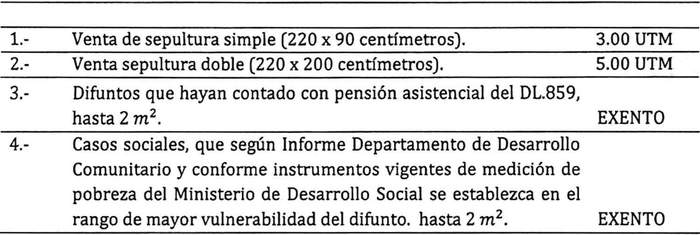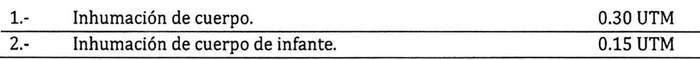 Artículo 28: El monto por los derechos de inhumación de cuerpo en las diferentes clases de sepultura son los siguientes: