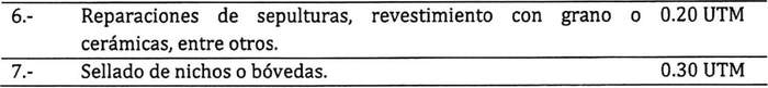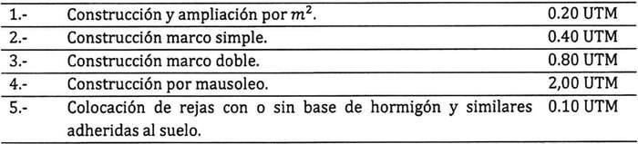 Artículo 31: Los derechos de construcción y ampliaciones de sepultura y mausoleo, serán los siguientes: