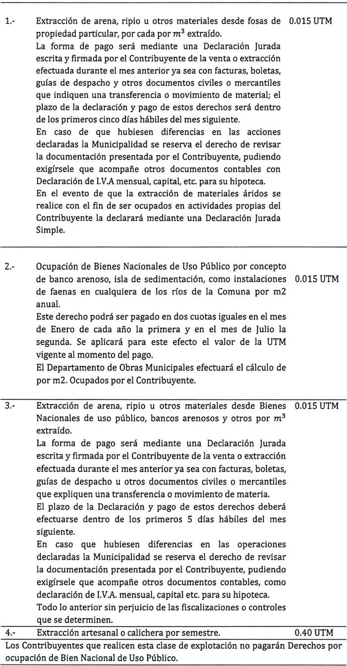 Artículo 36: La extracción de áridos y demás relacionados originarán los siguientes derechos: