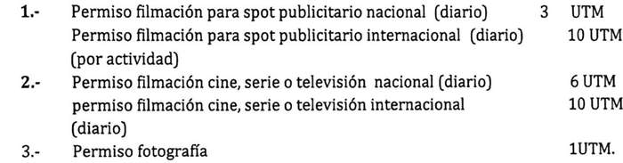 DERECHOS POR FILMACIONES Y FOTOGRAFÍAS EN LA COMUNA