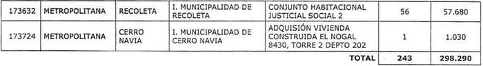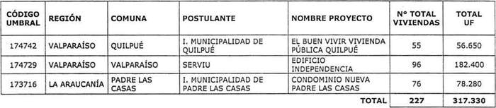 4. Apruébase la selección de los proyectos correspondientes al cierre del 25 de octubre de 2022, indicados en la siguiente tabla, para el otorgamiento de subsidios del Programa Habitacional Fondo Solidario de Elección de Vivienda, para la construcción de viviendas para arriendo, con su respectivo financiamiento total, el cual incluye los montos por concepto de servicios de asistencia técnica:
