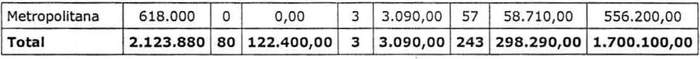 3.3. Reemplazar en la tabla inserta en su resuelvo 6., las filas Metropolitana y Total, por las siguientes: