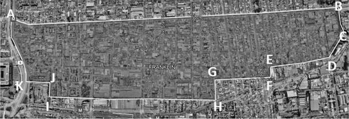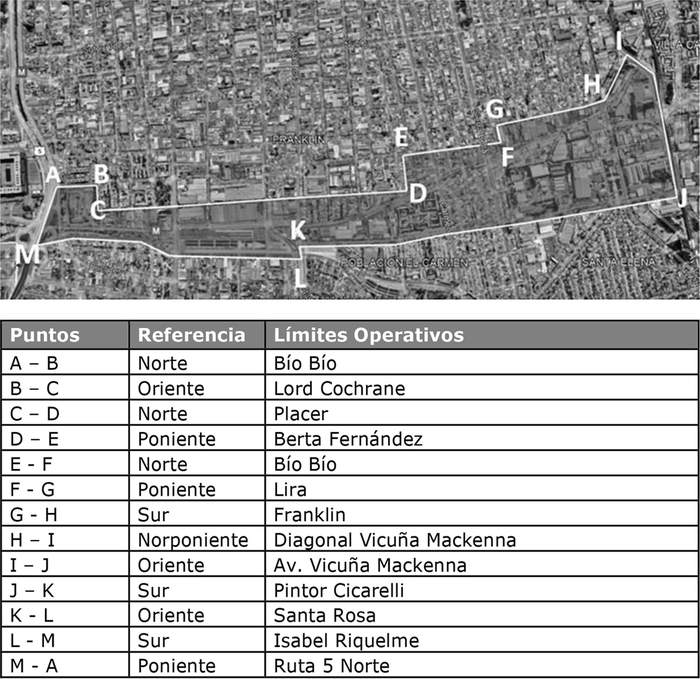 a. Zona de Interés Público "Regeneración Área Central Matadero Franklin Bío Bío" de la comuna de Santiago, quedará definida por los siguientes tramos:
