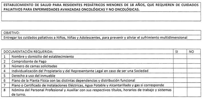 APRUÉBESE PAUTA DE REQUISITOS MÍNIMOS PARA ESTABLECIMIENTO DE SALUD PARA RESIDENTES PEDIÁTRICOS MENORES DE 18 AÑOS, QUE REQUIEREN DE CUIDADOS PALIATIVOS PARA ENFERMEDADES AVANZADAS ONCOLÓGICAS Y NO ONCOLÓGICAS