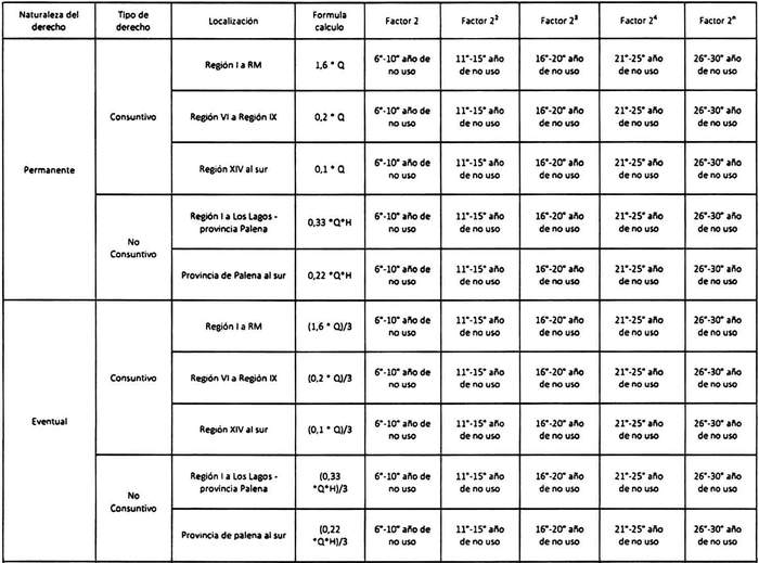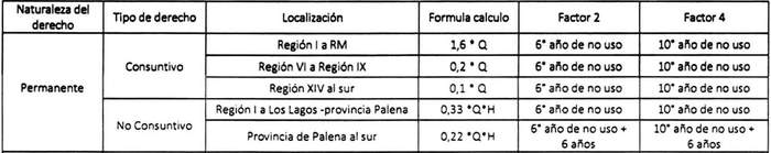- Q corresponde al caudal afecto a pago y en el caso de los derechos tanto consuntivos como no consuntivos se deberá expresar en metros cúbicos.