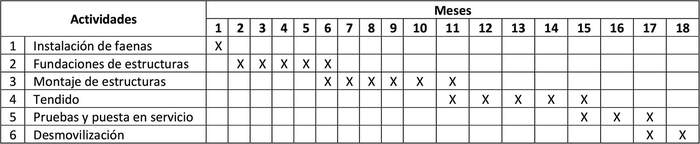 D.O. 27.12.2024 se estima en 18 meses, iniciándose dentro de los 28 meses siguientes, contados desde la fecha de reducción a escritura pública del presente decreto de concesión eléctrica definitiva. Los plazos para su terminación por etapas y secciones serán los que se indican a continuación: