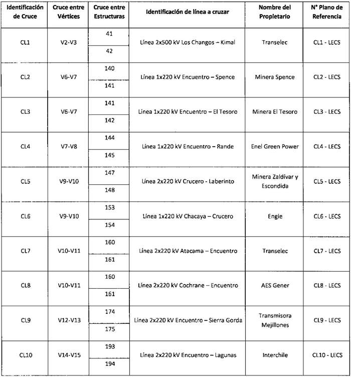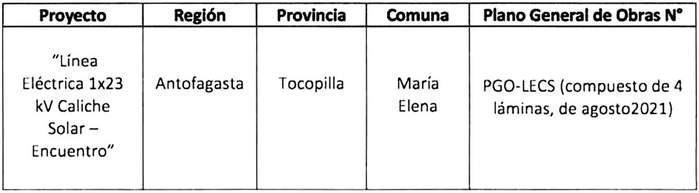 En su recorrido, la "Línea Eléctrica 1x23 kV Caliche Solar - Encuentro" afectará las líneas eléctricas, obras e instalaciones existentes que se indican a continuación: