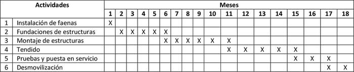 D.O. 19.01.2024plazo de construcción de las obras se estima en 18 meses, iniciándose dentro de los 15 meses siguientes, contados desde la fecha de reducción a escritura pública del presente decreto de concesión eléctrica definitiva. Los plazos para su terminación por etapas y secciones serán los que se indican a continuación: