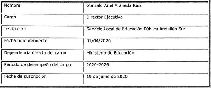 Firman: Gonzalo Araneda Ruiz, Director Ejecutivo del Servicio Local de Educación Pública de Andalién Sur, y Marco Antonio Ávila Lavanal, Ministro de Educación.".