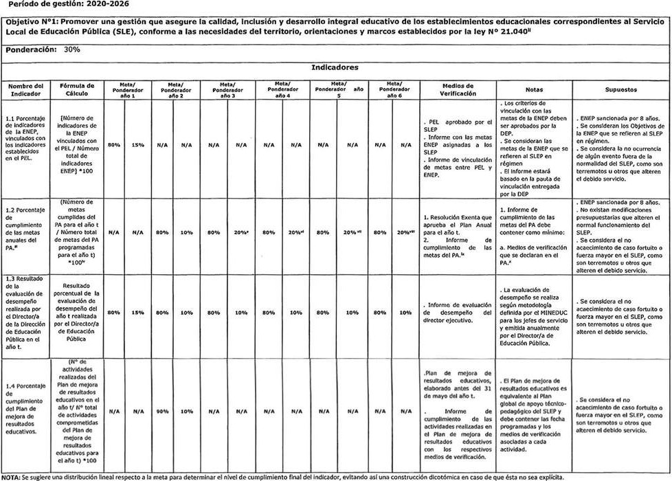 Que, para la fijación de los objetivos de gestión del mentado instrumento se deberán observar las políticas nacionales de educación pública establecidas por el Ministerio de Educación, así como las especificidades del territorio del Servicio Local respectivo, considerando al menos la calidad, eficiencia, equidad y cobertura del servicio educacional. De tal modo, el convenio deberá fijar objetivos y metas específicas orientadas al mejoramiento del desempeño de las entidades referidas, teniendo en especial consideración a los ordenados en categoría insuficiente, de acuerdo con la ley N° 20.529 que Crea el Sistema Nacional de Aseguramiento de la Calidad de la Educación Parvularia, Básica y Media y su Fiscalización.