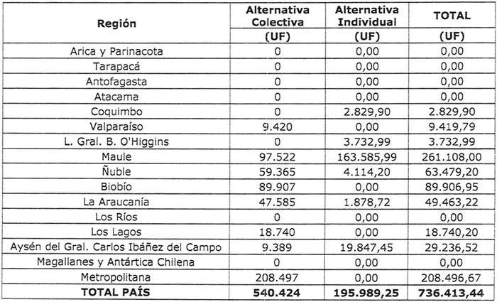 3. El número de proyectos seleccionados en cada región alcanzará hasta el número de subsidios susceptibles de ser financiados con los recursos previstos en la tabla inserta en el Resuelvo 2., para cada alternativa señalada, incluidos sus respectivos servicios de asistencia técnica y fiscalización técnica de obras, pudiendo practicarse redistribuciones y/o ajustes de marco presupuestario que serán aprobados mediante resolución.