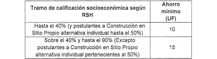 4.3. Los postulantes al presente llamado deben acreditar haber enterado el siguiente ahorro mínimo, conforme la calificación socioeconómica que presenten a la fecha de su incorporación al proyecto: