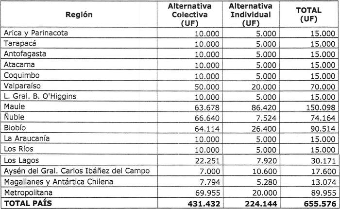 2. Los recursos involucrados por región, para la selección de postulantes según alternativa, son los siguientes: