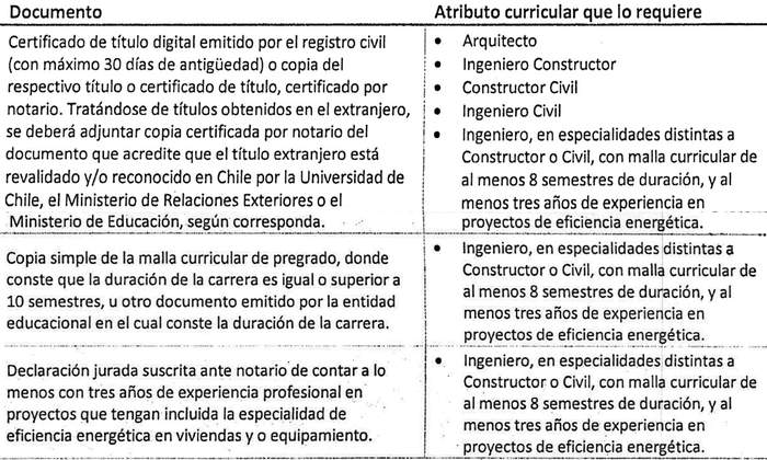 7. Los profesionales que deseen inscribirse en el presente llamado para acreditarse como evaluadores energéticos de la CEV, deben cumplir con los siguientes requisitos: