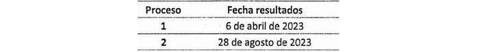 11.5. Se informará el resultado de la Prueba de conocimientos mínimos y los seleccionados para rendir la prueba de acreditación en la página web www.calificacionenergetica.cl o por correo electrónico, en las fechas indicadas en la siguiente tabla:
