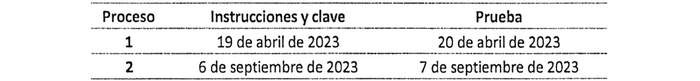 11.2. La prueba de conocimientos mínimos se realizará de modo no presencial mediante un sistema en línea (tipo e-learning). Las instrucciones y clave de acceso para rendir la prueba serán enviados al correo electrónico indicado por el postulante al momento de la inscripción. Las fechas de envío de instrucciones y de realización de la prueba se indican en la siguiente tabla: