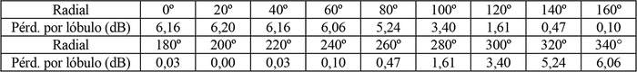 - Diagrama de radiación horizontal de acuerdo a la siguiente tabla: