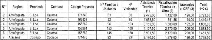 3. El monto del subsidio asignado de conformidad con el cuadro del resuelvo 2. de esta resolución comprende los siguientes valores por concepto de Servicios de Asistencia Técnica, de Labores de Fiscalización Técnica de Obra y pago de Aranceles al Conservador de Bienes Raíces: