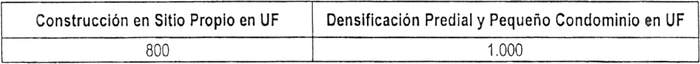Para los efectos de imputar los recursos correspondientes a los subsidios a otorgar en el presente llamado, se considerará un monto promedio de 1.407 Unidades de Fomento por unidad de vivienda, para la tipología de Construcción en Sitio Propio, y 1.850 Unidades de Fomento en el caso de las tipologías de Pequeño Condominio y Densificación Predial, incluidos los recursos destinados a los gastos de traslado y albergue transitorio, y al pago de la Asistencia Técnica y Fiscalización Técnica de Obras.