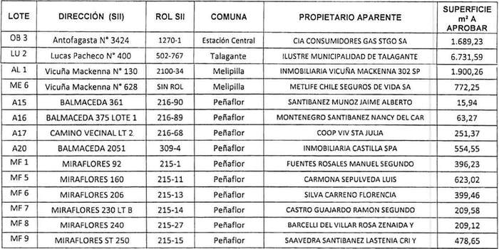 m) Los Informes Técnicos DDUI / 2022, contenidos en las 22 Fichas de Evaluación de Terrenos suscritas por el Jefe del Departamento de Desarrollo Urbano de la Secretaría Regional Ministerial de Vivienda y Urbanismo de la Región Metropolitana, correspondientes al Lote OB 3 (Rol de Avalúo 1270-1, comuna Estación Central), Lote LU 2 (Rol de Avalúo 502-767, comuna de Talagante), Lote AL 1 (Rol de 2100-34, comuna de Melipilla), Lote ME 6 (Sin Rol de Avalúo), Lote A 15 (Rol de Avalúo 216-90, comuna de Peñaflor), Lote A 16 (Rol de Avalúo 216-89, comuna de Peñaflor), Lote A 17 (Rol de Avalúo 216-68, comuna de Peñaflor), Lote A 20 (Rol de Avalúo 309-4, comuna de Peñaflor), Lote MF 1 (Rol de Avalúo 215-1, comuna de Peñaflor), Lote MF 5 (Rol de Avalúo 215-11, comuna de Peñaflor), Lote MF 6 (Rol de Avalúo 215-13, comuna de Peñaflor), Lote MF 7 (Rol de Avalúo 215-14, comuna de Peñaflor), Lote MF 8 (Rol de Avalúo 215-27, comuna de Peñaftor), Lote MF 9 (Rol de Avalúo 215-15, comuna de Peñaflor), Lote MF 11 (Rol de Avalúo 224-15, comuna de Peñaflor), Lote MF 12 (Rol de Avalúo 224-14, comuna de Peñaflor), Lote MF 13 (Rol de Avalúo 224-13, comuna de Peñaflor), Lote MF 14 (Rol de Avalúo 224-12, comuna de Peñaflor), Lote MF 15 (Rol de Avalúo 224-06, comuna de Peñaflor), Lote MF 17 (Rol de Avalúo 224-21, comuna de Peñaflor), Lote MF 18 (Rol de Avalúo 224-20, comuna de Peñaflor), y Lote MF 19 (Rol de Avalúo 224-34, comuna de Peñaflor);