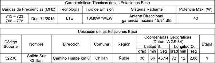1. Autorízase a la concesionaria para instalar, operar y explotar una (1) estación base, cuyas características técnicas se indican a continuación: