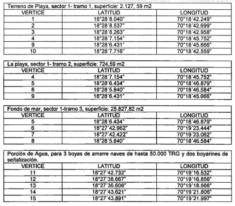 A través del decreto supremo Nº 250, de fecha 21 de diciembre de 2022, el Ministerio de Defensa Nacional, Subsecretaría para las Fuerzas Armadas, de Chile, otorga tercera renovación con modificación - No Sustancial de Concesión Marítima Mayor, a Yacimientos Petrolíferos Fiscales Bolivianos (YPFB), domiciliada en la comuna de Arica, Av. Renato Rocca Nº 1999, sobre un sector de terreno de playa, playa, fondo de mar y porción de agua, que disfruta por decreto supremo Nº 9, del 29 de febrero de 2000, del Ministerio de Defensa Nacional, en el lugar denominado El Chinchorro, Puerto de Arica, comuna y Provincia de Arica, Región de Arica y Parinacota; individualizada en ubicación señalada en el plano Nº 2217-21-S, la que fue tramitada con el SIABC Nº43.821, de fecha 6 de agosto de 2019.